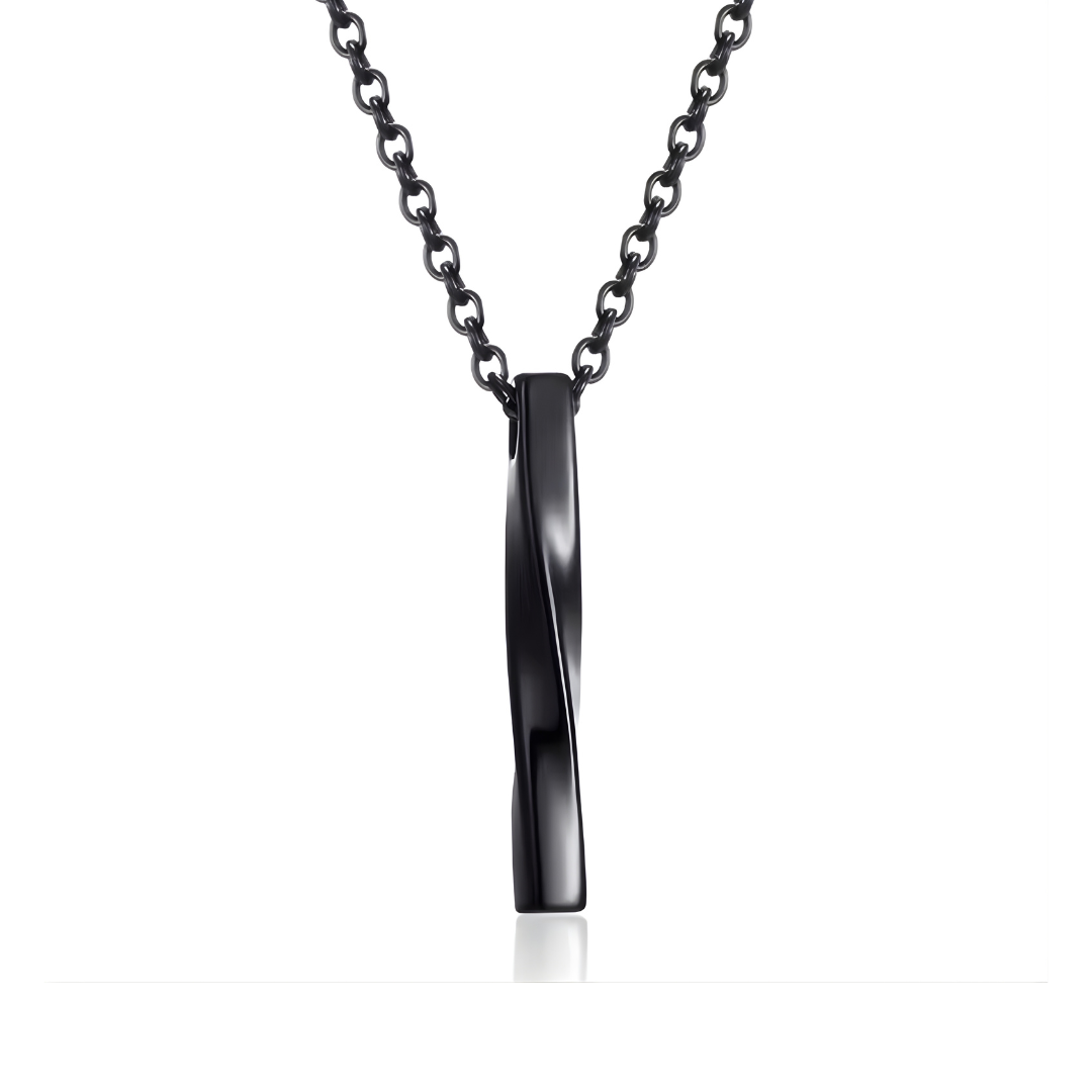 Bei schwarzen Schmuckstücken verwenden wir eine feine Oberflächengravur, damit der Kontrast sichtbar wird – die Gravur erscheint hier silberfarben auf schwarzem Hintergrund.